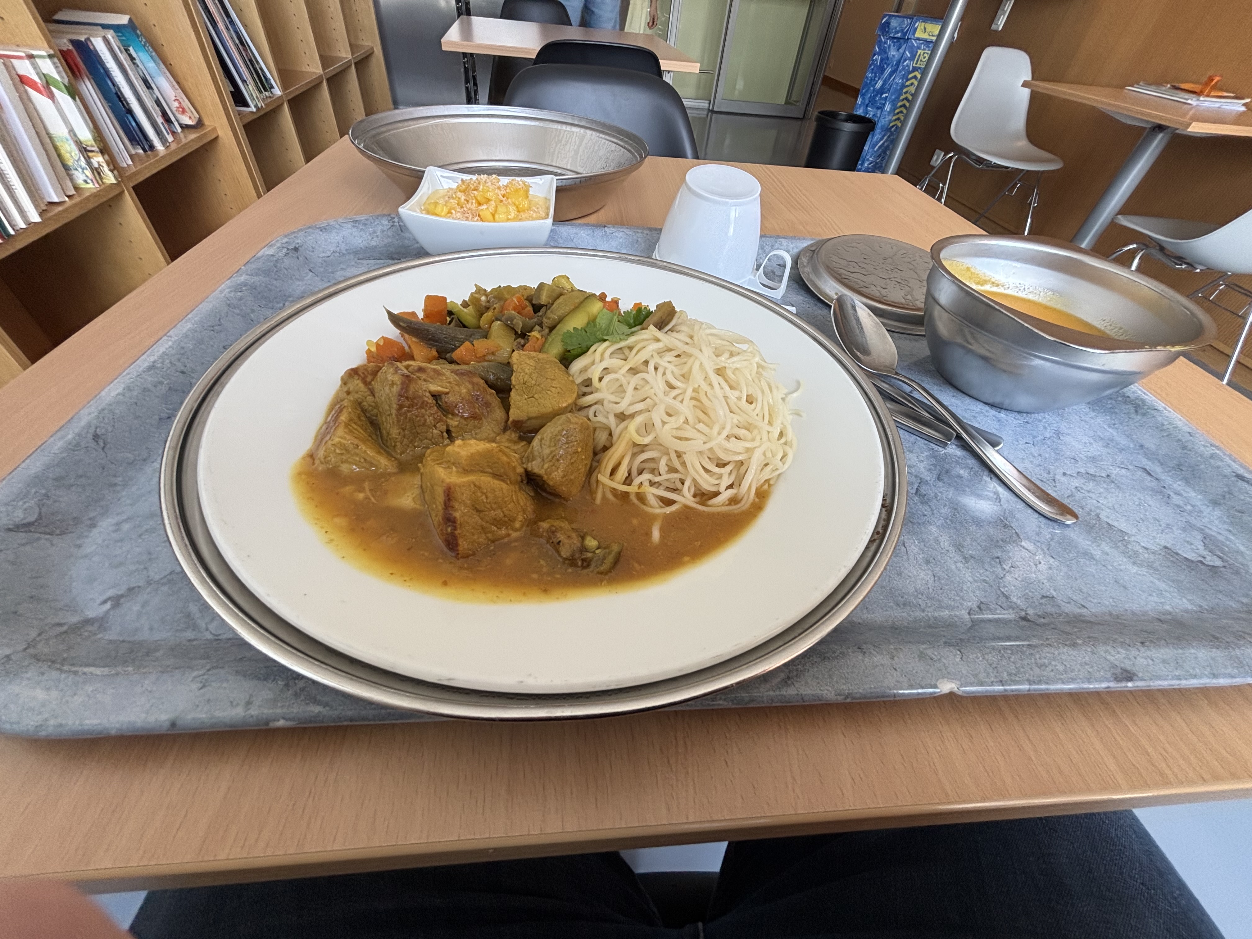 Vers 08h30, n’ayant pas de nouvelles pour mes traitements ou pour mon déjeuner, je fini par sonner. On m’explique que le déjeuner est servis à tel endroit, on m’y conduit. J’oublie de demander pour mon traitement. Tant pis, je le prendrai plus tard.