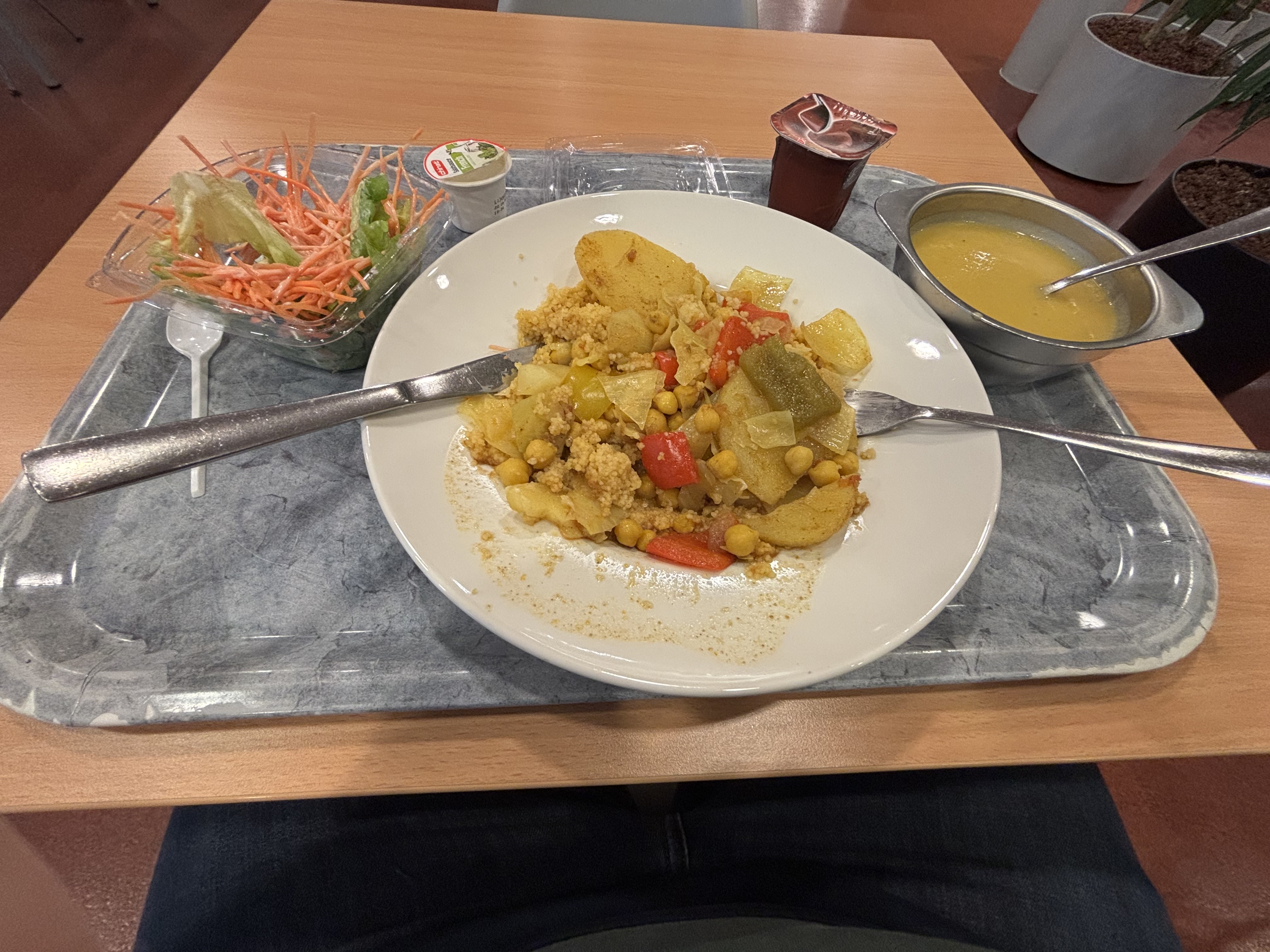18h, l’heure du repas a sonné. Je descend et me retrouve face à un plat qui ne m’inspire pas grand chose… mais ça se mange quand même finalement.